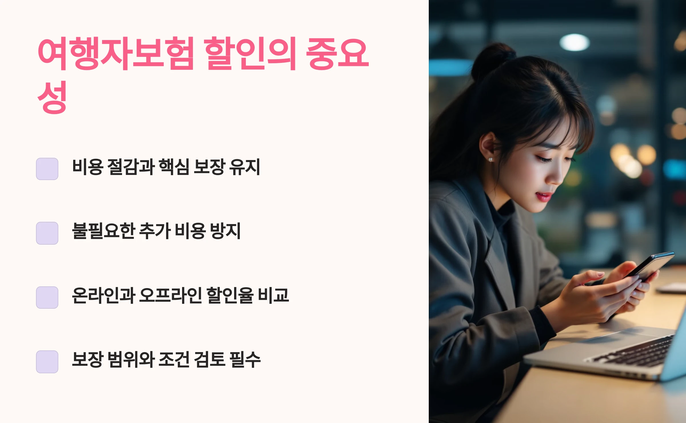 할인 혜택을 활용하면 보험 가입 비용을 크게 줄일 수 있으면서도 핵심적인 보장 내용을 유지할 수 있습니다. 다양한 할인 옵션과 혜택은 불필요한 추가 비용을 방지하고, 여행자보험을 보다 경제적으로 이용할 수 있도록 도와줍니다. 특히, 온라인 가입과 오프라인 상품의 할인율을 비교하여 최적의 선택을 하는 것이 중요하며, 할인 혜택이 보장 범위나 조건을 약화시키지 않는지 꼼꼼히 검토하는 것이 필요합니다.