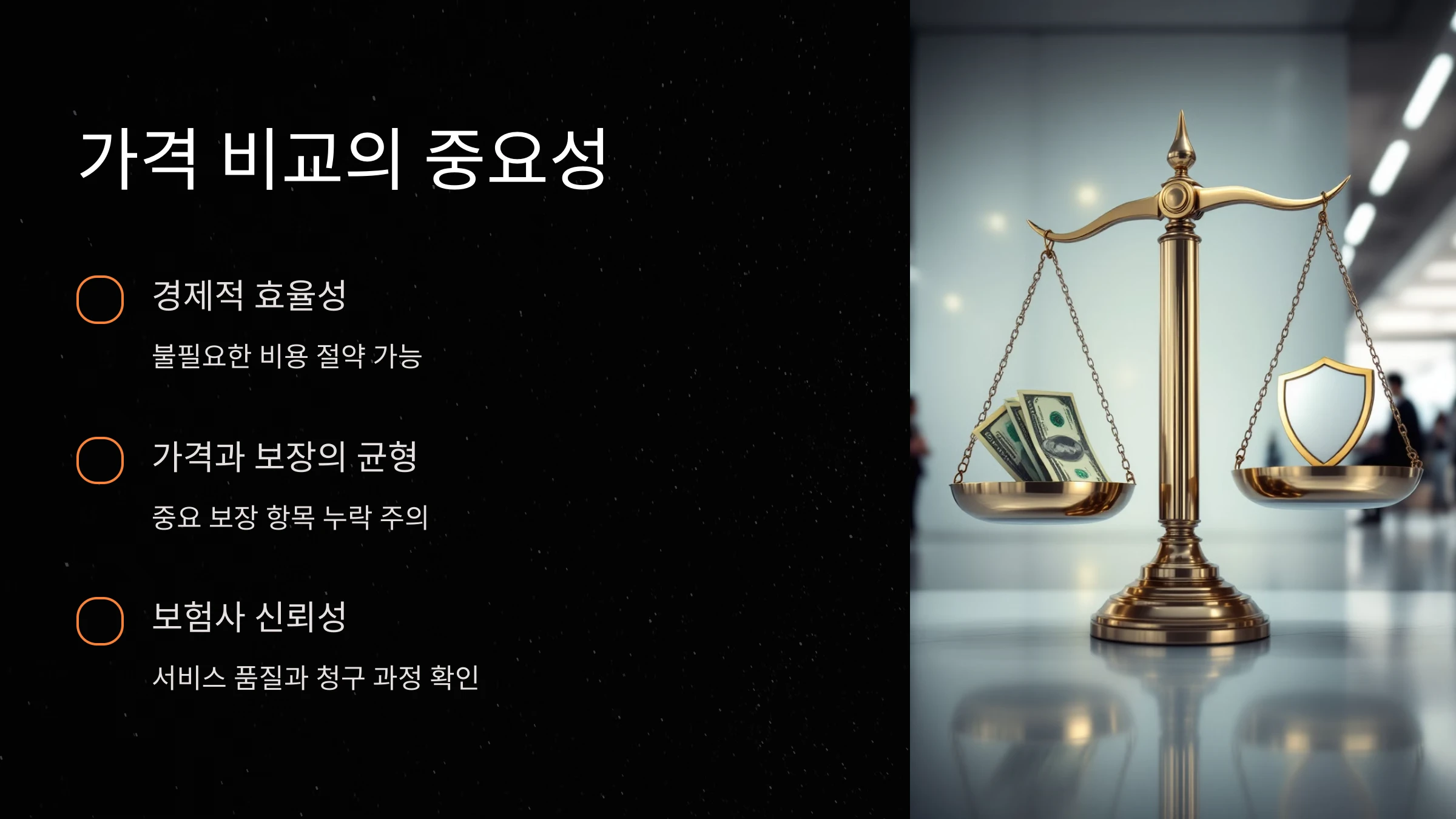 A: 가격 외에도 보장 항목과 조건을 꼼꼼히 확인해야 제대로 된 보상을 받을 수 있습니다.
