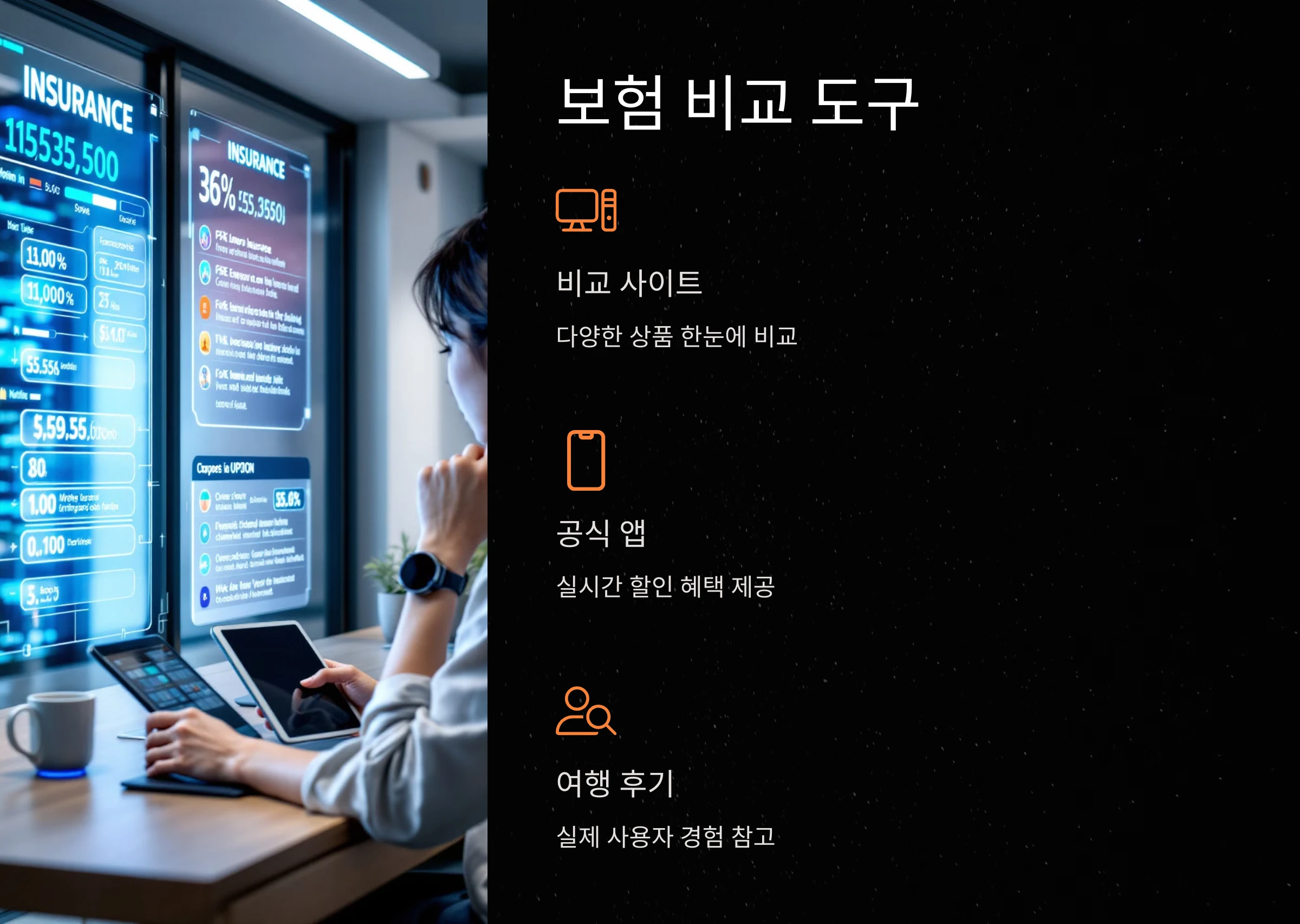 보험 비교 사이트 활용 각종 보험 비교 플랫폼은 다양한 상품을 한눈에 비교할 수 있는 강력한 도구입니다. 주요 보험사의 상품과 가격을 한곳에서 확인할 수 있어 효율적입니다. 공식 웹사이트와 앱 사용 보험사의 공식 웹사이트를 통해 상세한 보장 조건과 프로모션 정보를 확인하세요. 최근에는 모바일 앱을 통해 실시간으로 할인 혜택을 제공하는 보험사도 많아졌습니다. 여행 후기와 리뷰 참고 실제 사용자들의 경험은 보험사의 신뢰성을 평가하는 데 중요한 자료가 됩니다. 보험금을 청구한 사례를 참고해 처리 속도와 서비스 품질을 확인하세요. 전문 상담 활용 복잡한 약관을 이해하거나 맞춤형 상품을 추천받고 싶다면 대리점이나 전문 상담사의 도움을 받을 수 있습니다.