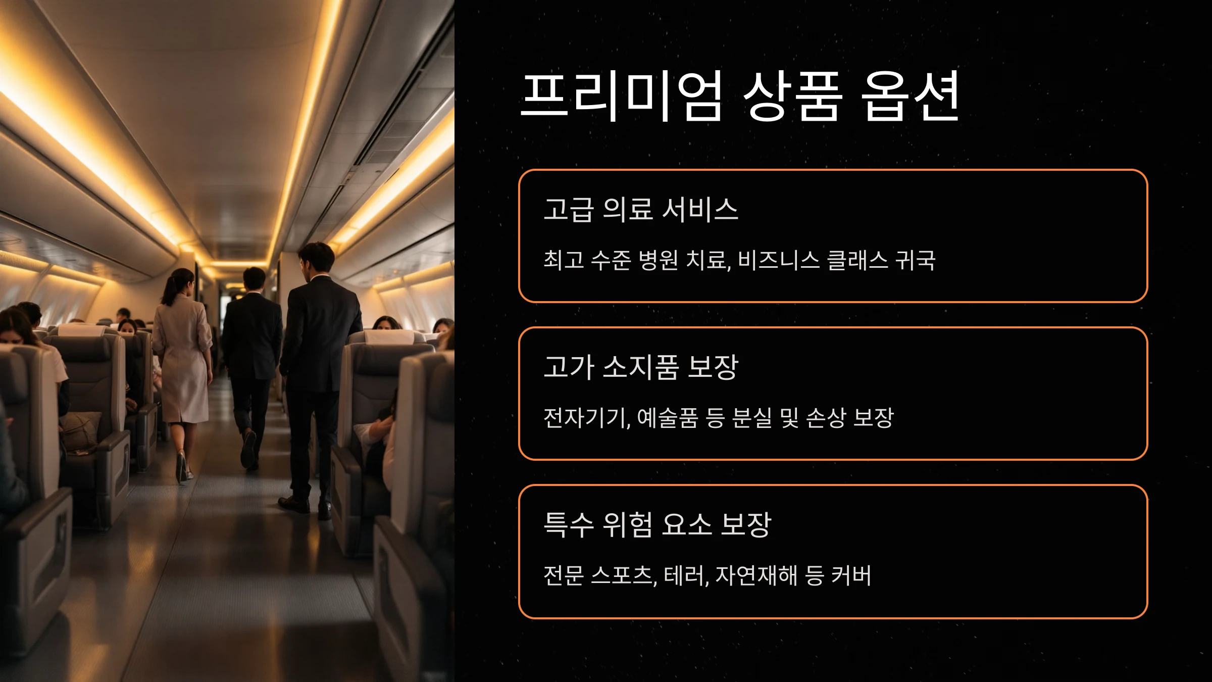 프리미엄 보험은 일반 상품과 달리 고급 의료 서비스나 비즈니스 클래스 복귀 옵션과 같은 특별한 혜택을 포함합니다. 예를 들어, 해외에서 심각한 의료 응급 상황이 발생할 경우, 최고 수준의 병원에서 치료받을 수 있으며, 필요시 비즈니스 클래스나 전용기를 이용해 귀국하는 서비스도 제공됩니다. 이와 함께, 고가의 전자기기나 예술품 같은 소지품의 분실 및 손상에 대한 보장도 포함될 수 있습니다. 또한, 전문 스포츠 활동 보장이나 테러 및 자연재해 같은 비일상적인 위험 요소까지 커버할 수 있어 안전에 민감한 여행자에게 적합합니다. 물론 보험료는 일반 상품보다 높지만, 사고 발생 시 부담을 최소화하고 여행을 보다 안심하며 즐길 수 있다는 점에서 가치가 큽니다.
